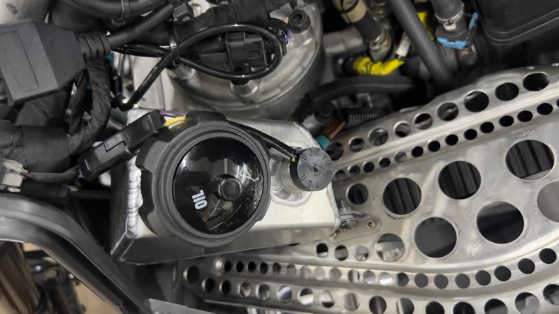This race-inspired lightweight aluminum oil tank holds 1 quart of oil, which is enough for 1 tank of fuel. It uses the stock cap, sensor, lines, and pickup, and no chassis modification required for installation, so it bolts up in a matter of minutes. The smaller size also allows for extra underhood storage on top of the clutch cover. Designed for racers in modified class hillclimb or drag racing applications, or any mountain or trail rider that wants to shed some extra weight.